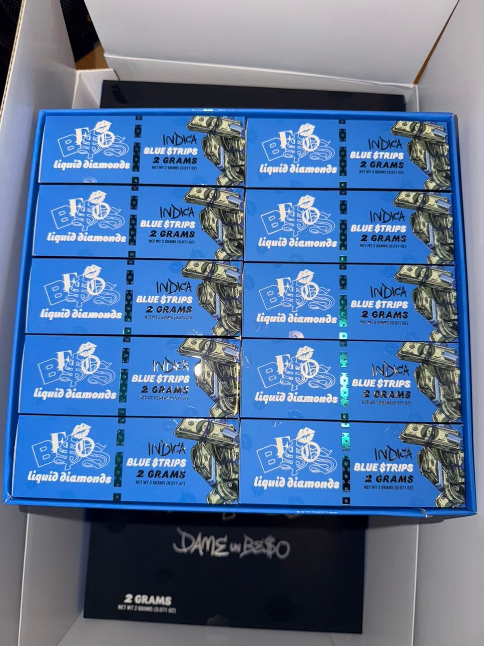 In the ever-evolving world of luxury disposables, few names hold the same respect and reputation as Besos. Known for their innovation, top-tier extract quality, and bold limited-edition collaborations, Besos is back with another exclusive drop — Besos 2G x SDL Edition Disposable, featuring the Blue $trips flavor. This is not your average disposable; it’s a limited-edition indica masterpiece infused with premium liquid diamonds, designed for connoisseurs who crave flavor, power, and quality in one all-in-one device.